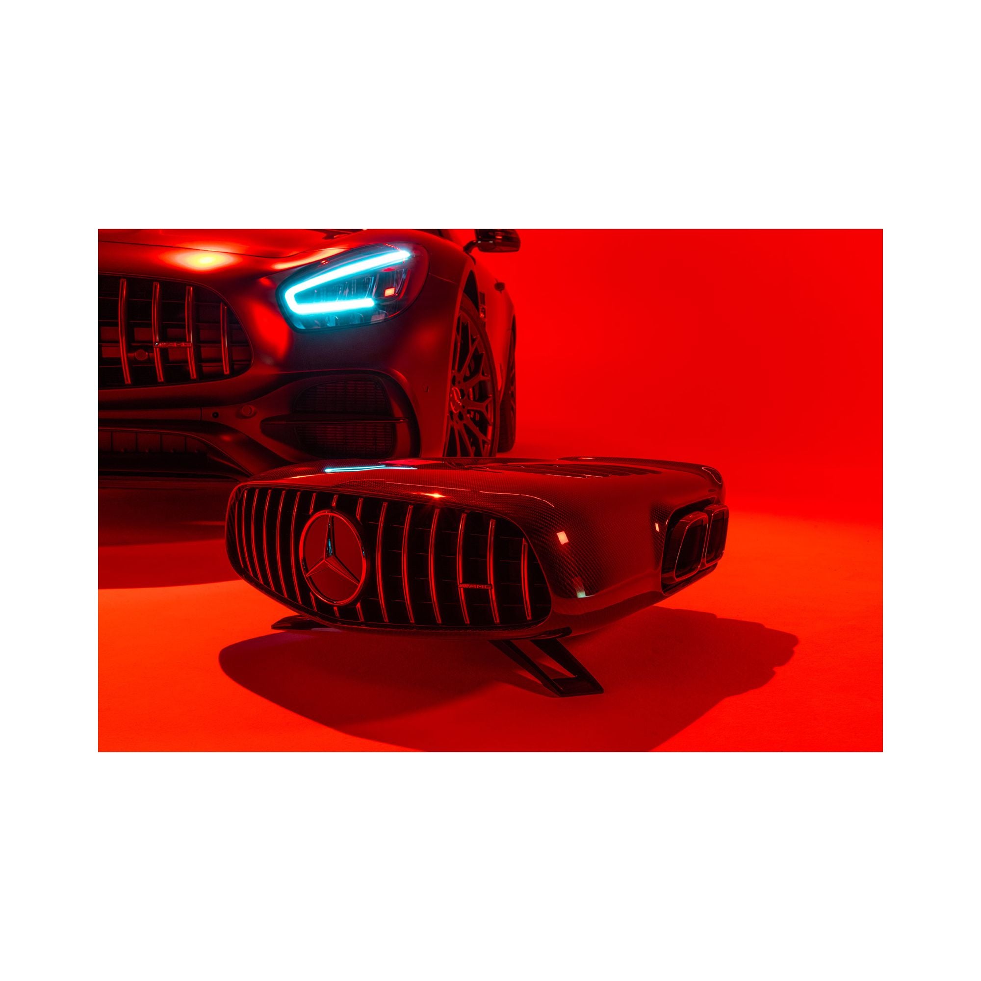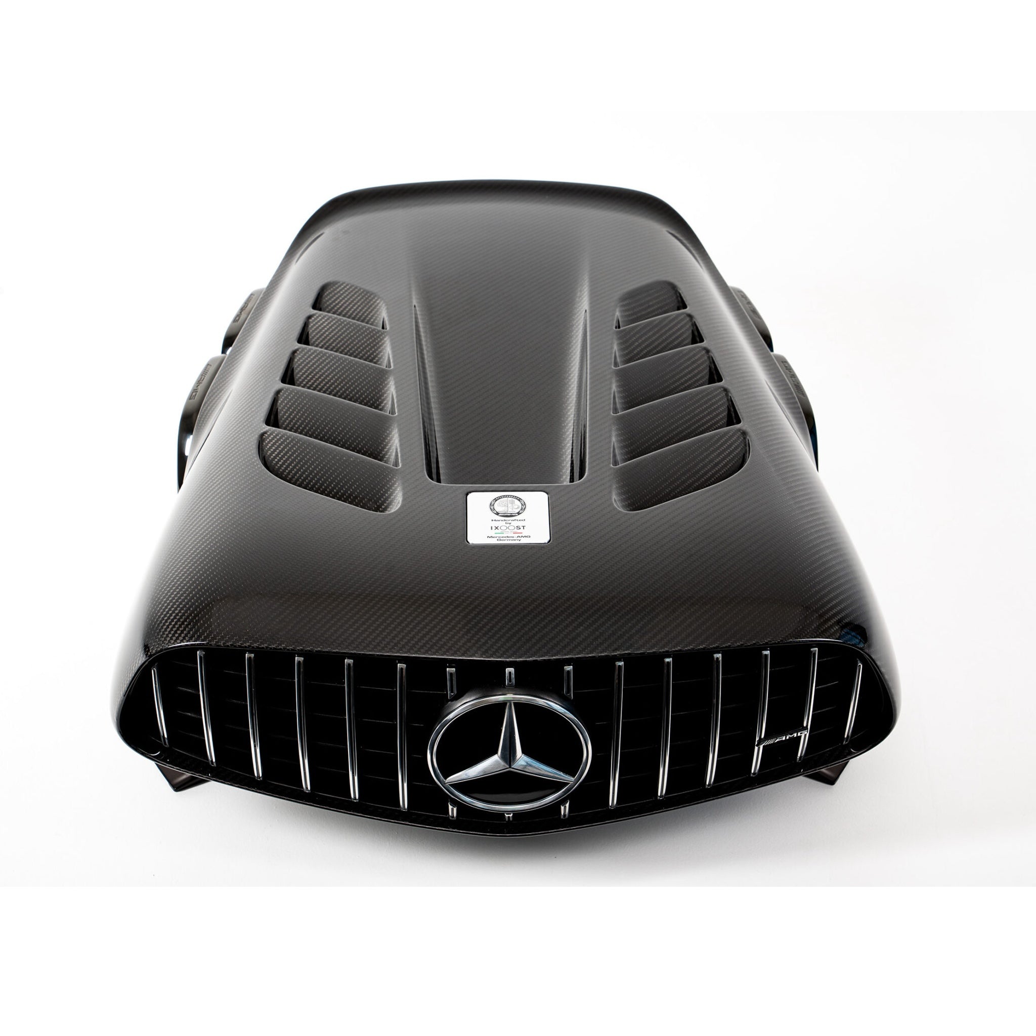 Not only does the AMG Performance Luxury Audio sound incredible, but it also looks the part. Crafted with a carbon monocoque chassis, this audio system is both lightweight and incredibly strong. The stand and front grille are made from anodized aluminum, adding a touch of elegance to its sleek design. Plus, the incorporation of original AMG GT exhausts and an AMG engine emblem signed by iXOOST pays homage to its automotive heritage, making it a true collector’s item.
